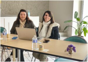 Un temps d’échange en questions-réponses réunissant stagiaires, bénévoles et professionnels de santé, dont Michel et Charlène.